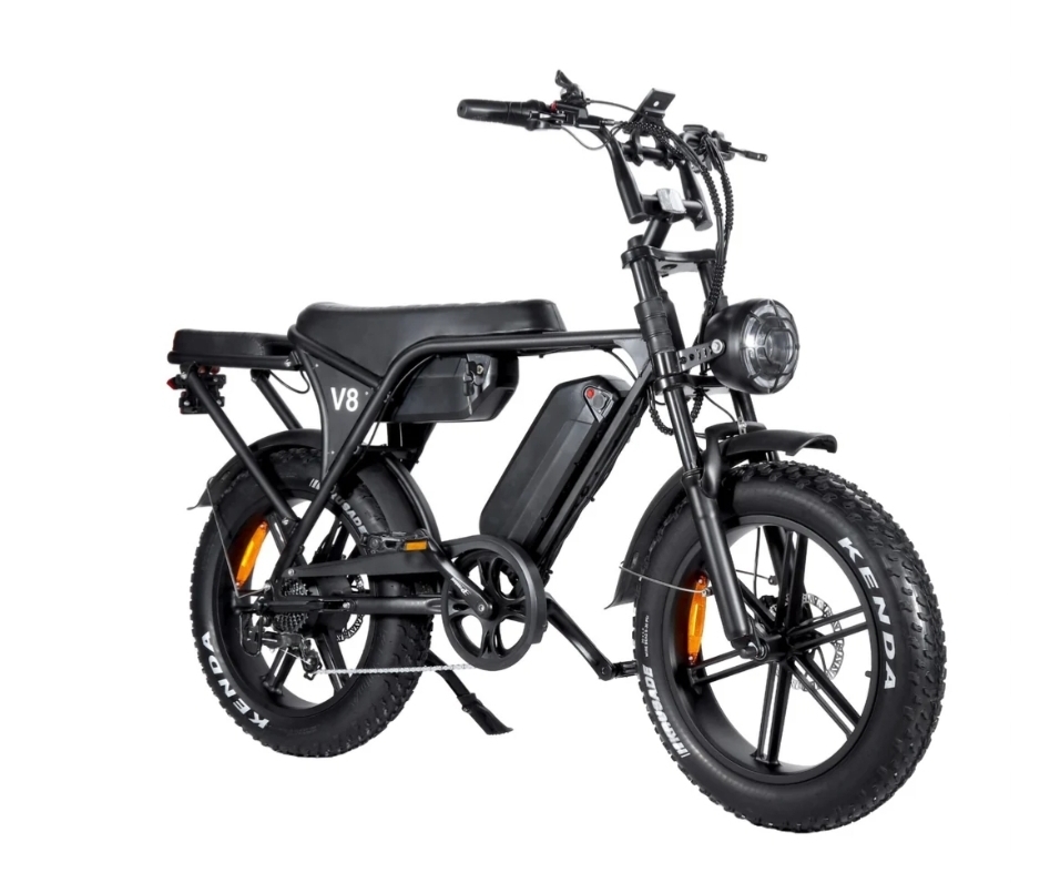 Dizajni i Ouxi V8 Max është sportiv dhe elegant, me drita LED të integruara për ndriçim maksimal gjatë natës dhe sinjale kthimi për manovrim të sigurt. Amortizatorët përpara dhe prapa e bëjnë ngasjen më të butë dhe komode, edhe në rrugë me gropa apo terrene të vështira.